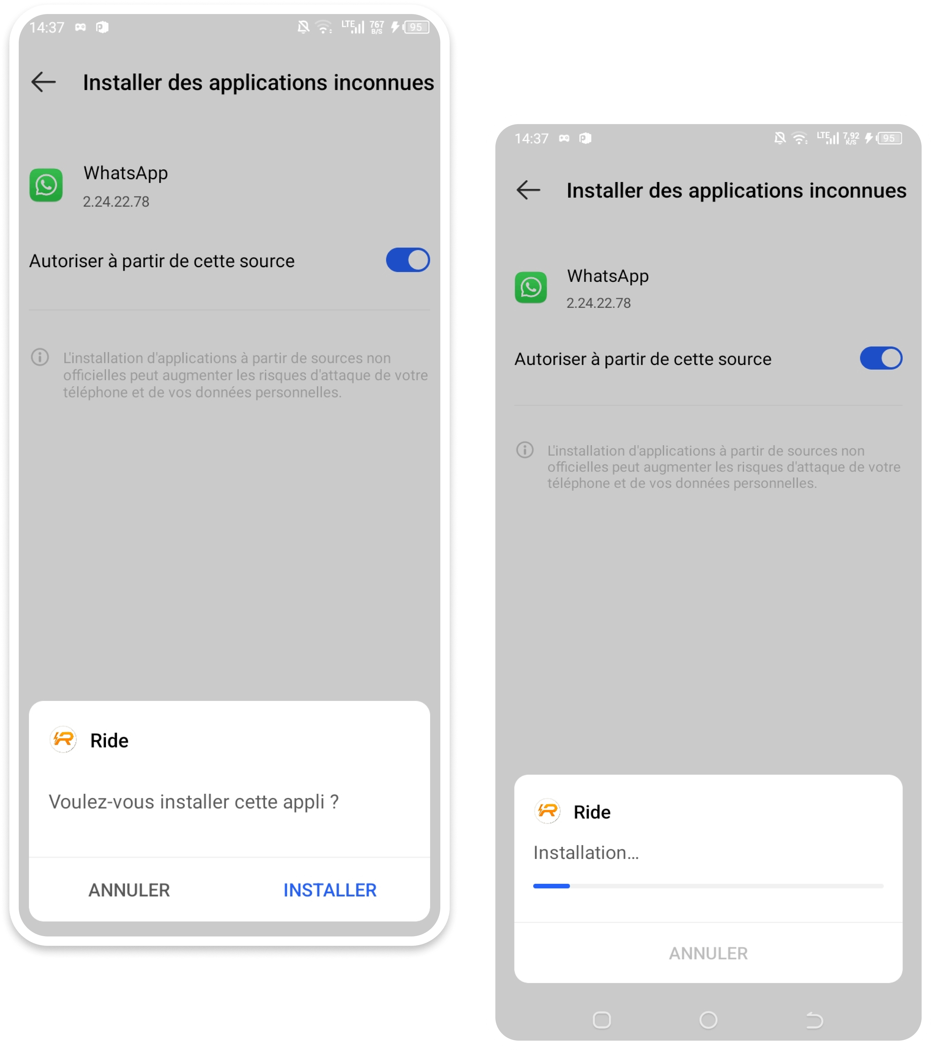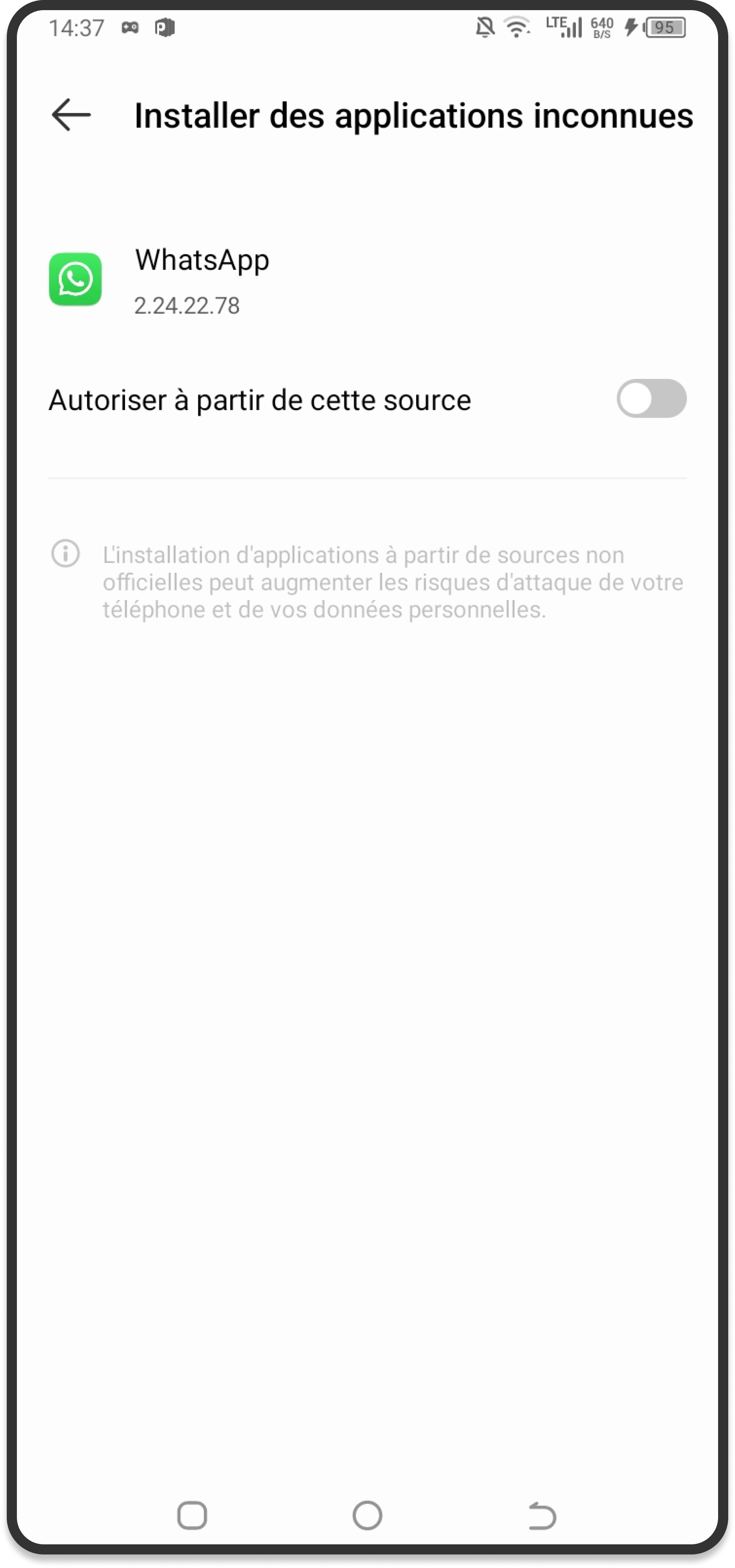 Après avoir autorisé les sources inconnues, appuyez sur Installer.